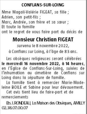 Décédé à Conflans-sur-Loing (45700, France) le mardi 8 novembre 2022 à l'âge de 83 ans