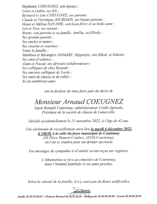 Décédé à Saint-Hilaire-les-Andrésis (45320, France) le lundi 21 novembre 2022 à l'âge de 42 ans