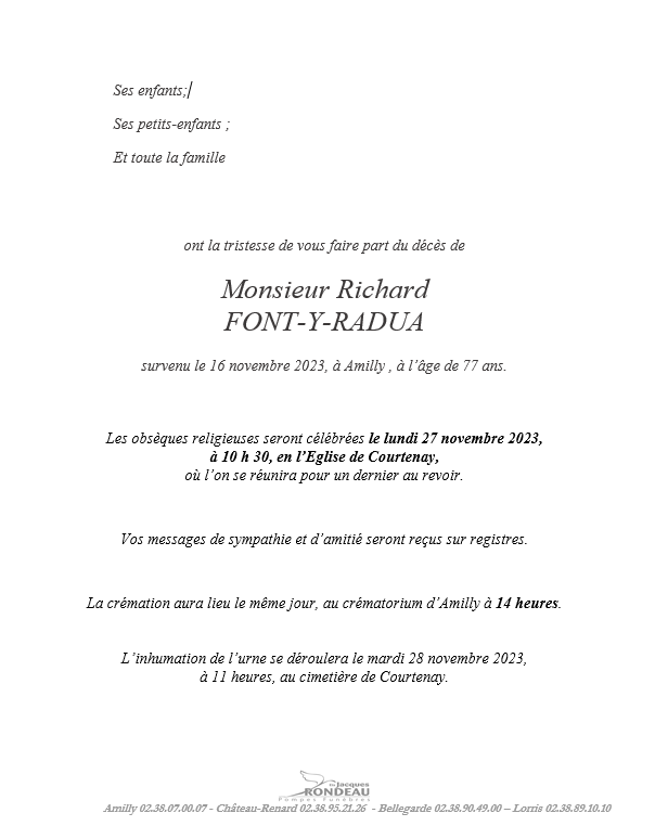Décédé à Amilly (45200, France) le jeudi 16 novembre 2023 à l'âge de 77 ans