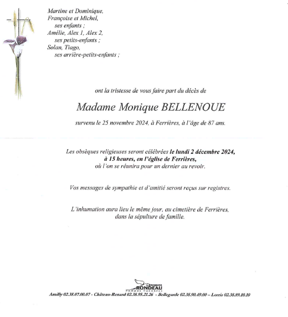 Veuve de Monsieur Gérard BELLENOUE