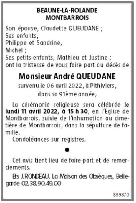 Epoux de Madame Claudette QUEUDÂNE