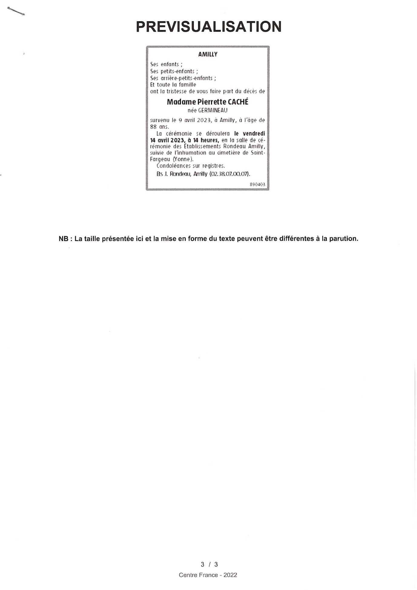 Annonce nécrologique