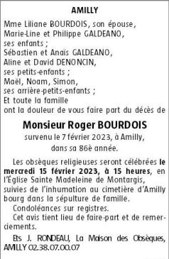 Décédé à Amilly (45200, France) le mardi 7 février 2023 à l'âge de 85 ans