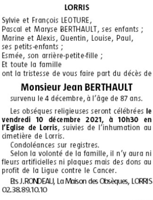 Veuf de Madame Solange BERTHAULT