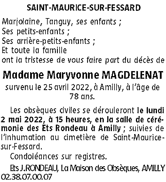 Madame Maryvonne MAGDELENAT née HOUX