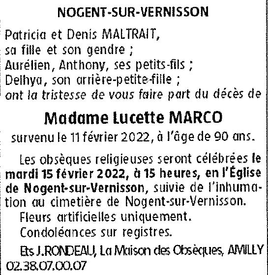Décédée à Saint-Pierre-lès-Nemours (77140, France) le vendredi 11 février 2022 à l'âge de 90 ans