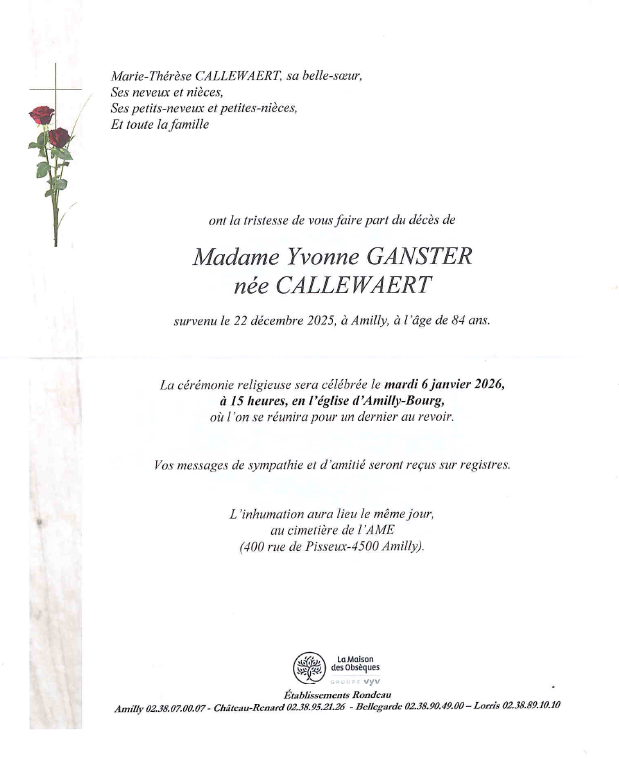 Madame Yvonne GANSTER née CALLEWAERT