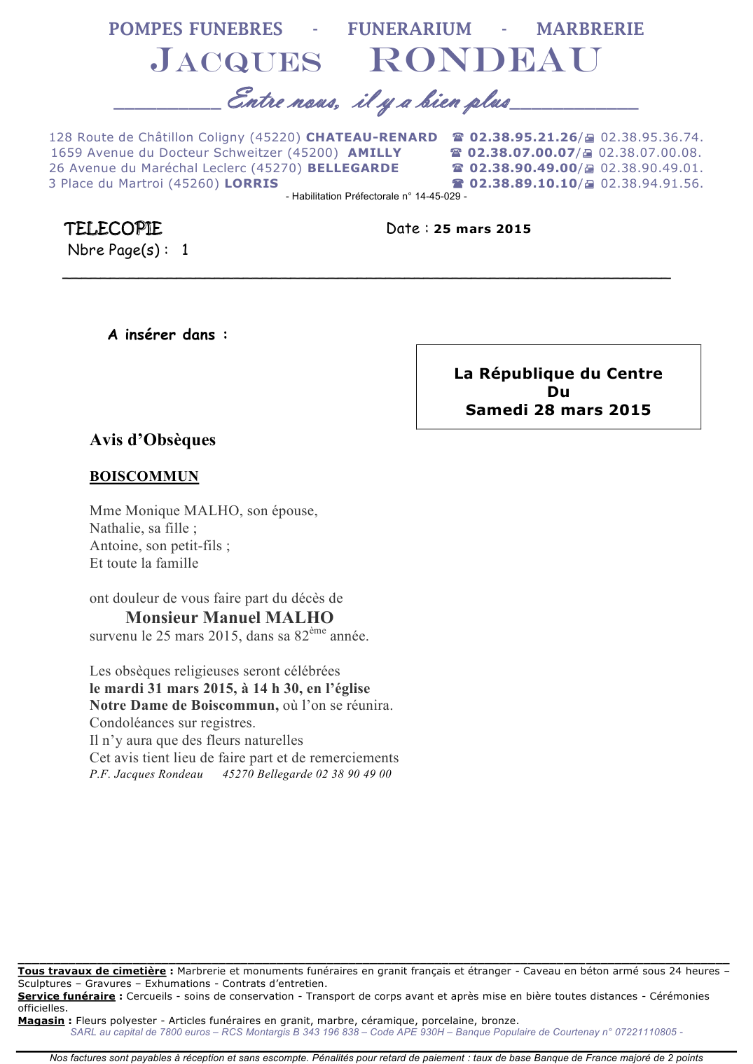 Annonce nécrologique