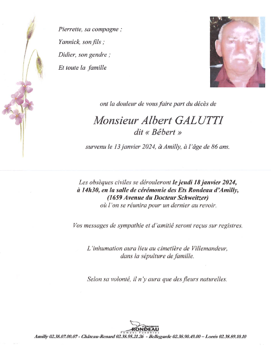 Décédé à Amilly (45200, France) le samedi 13 janvier 2024 à l'âge de 86 ans