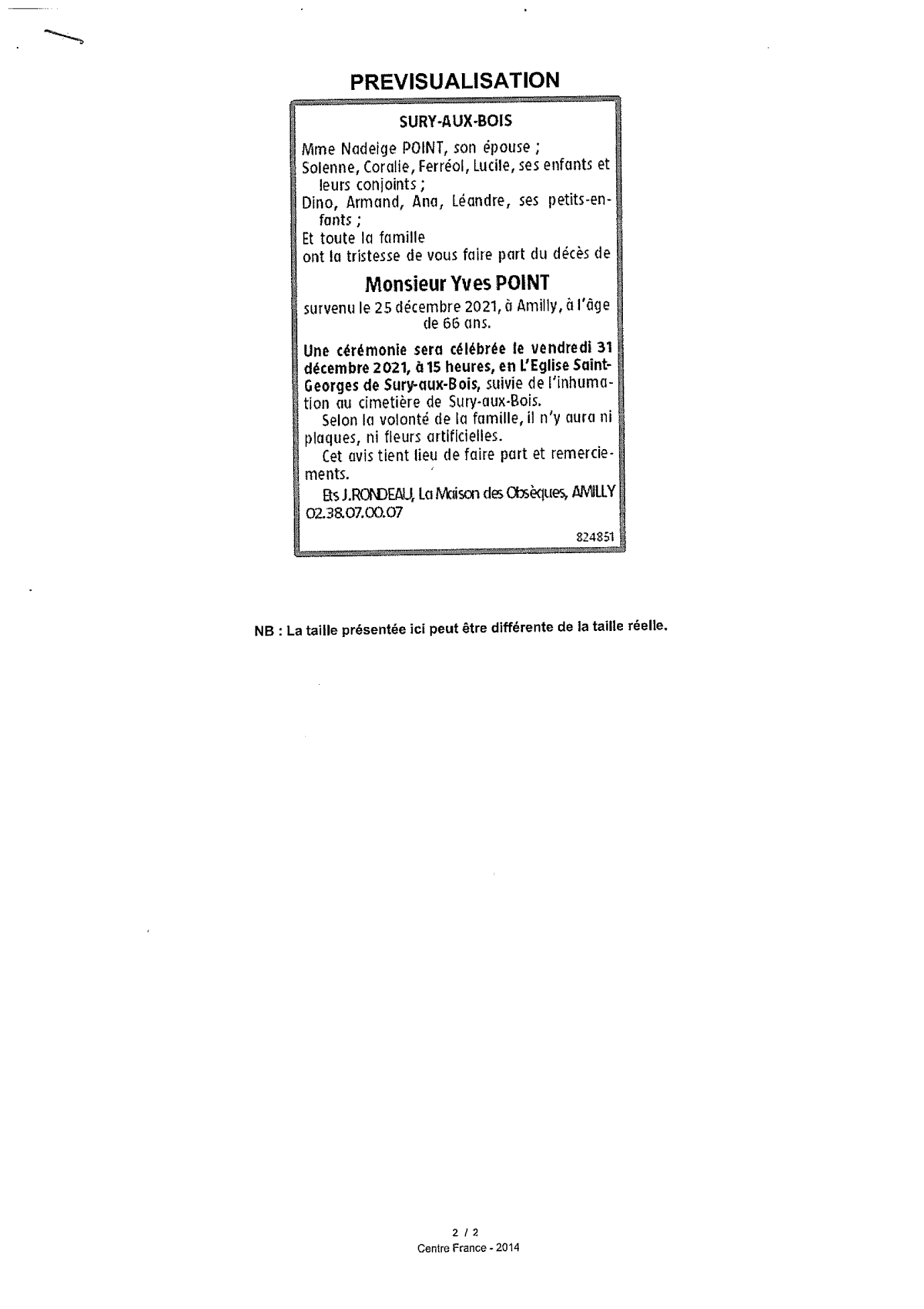 Décédé à Amilly (45200, France) le samedi 25 décembre 2021 à l'âge de 66 ans