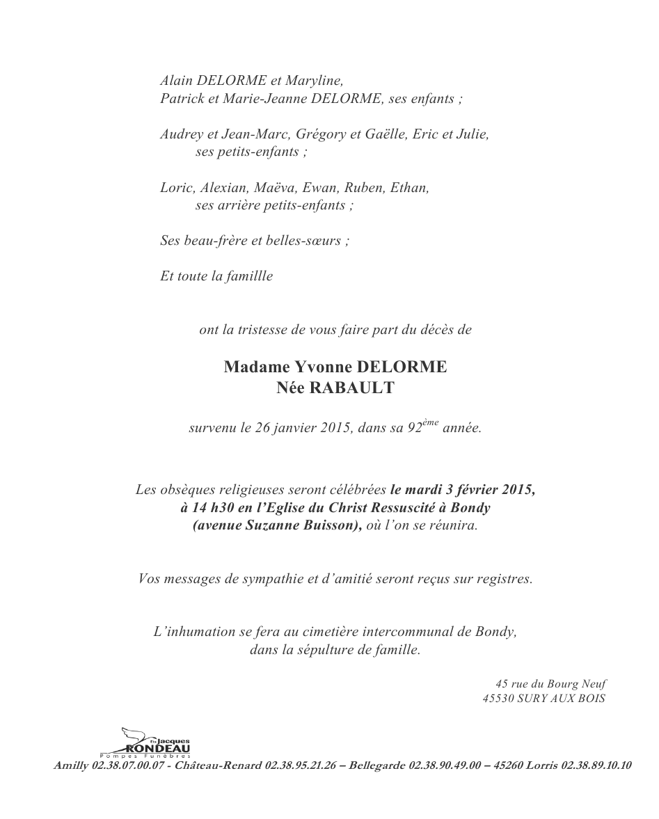 Décédée à Seichebrières (45530, France) le lundi 26 janvier 2015 à l'âge de 91 ans