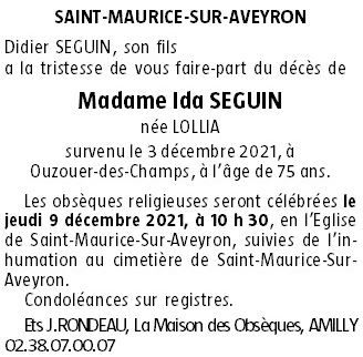 Décédée à Ouzouer-des-Champs (45290, France) le vendredi 3 décembre 2021 à l'âge de 75 ans