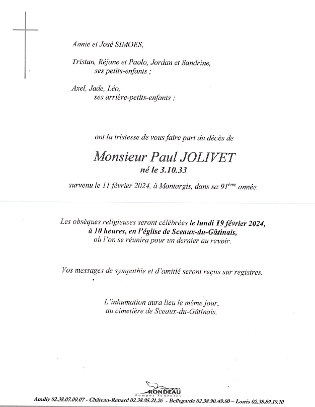 Décédé à Montargis (45200, France) le dimanche 11 février 2024 à l'âge de 90 ans