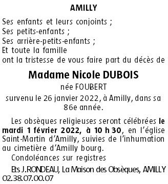 Décédée à Amilly (45200, France) le mercredi 26 janvier 2022 à l'âge de 85 ans
