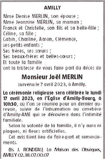 Décédé à Amilly (45200, France) le vendredi 7 avril 2023 à l'âge de 72 ans