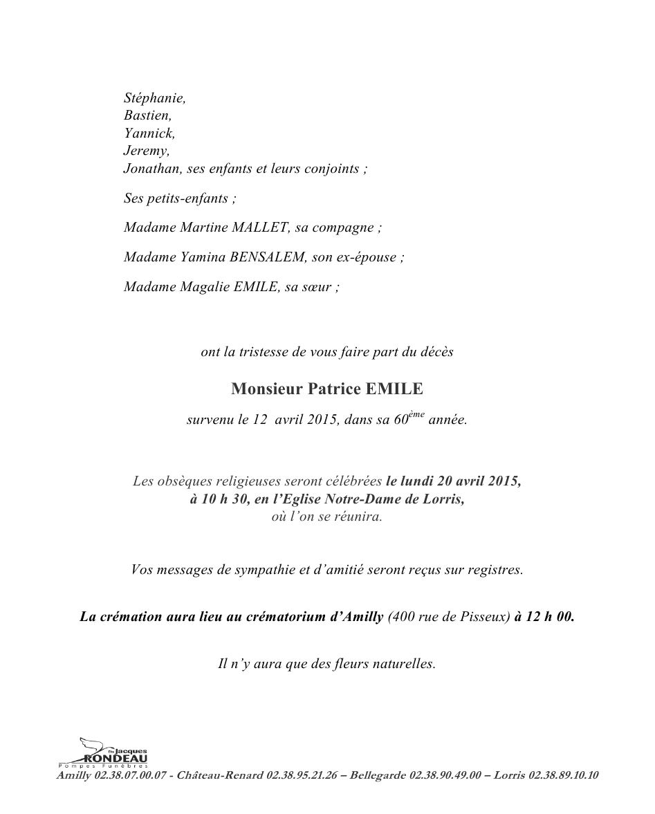Décédé à Mainvilliers (28300, France) le dimanche 12 avril 2015 à l'âge de 59 ans