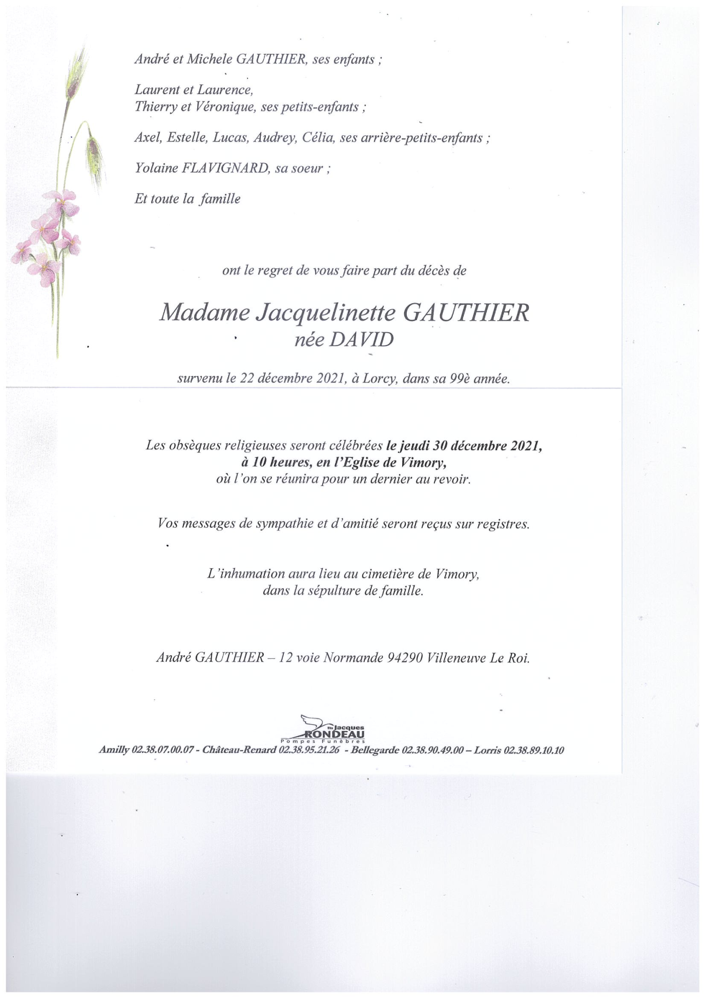Décédée à Lorcy (45490, France) le mercredi 22 décembre 2021 à l'âge de 98 ans