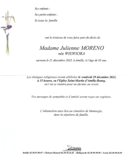 Décédée à Amilly (45200, France) le jeudi 21 décembre 2023 à l'âge de 85 ans