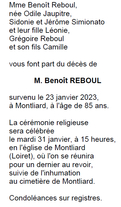 Décédé à Montliard (45340, France) le lundi 23 janvier 2023 à l'âge de 85 ans