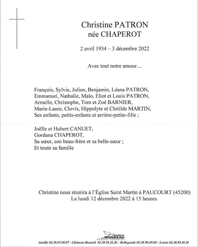 Décédée à Paris (75015, France) le samedi 3 décembre 2022 à l'âge de 88 ans