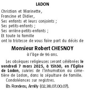 Décédé à Bellegarde (45270, France) le mercredi 26 février 2025 à l'âge de 96 ans