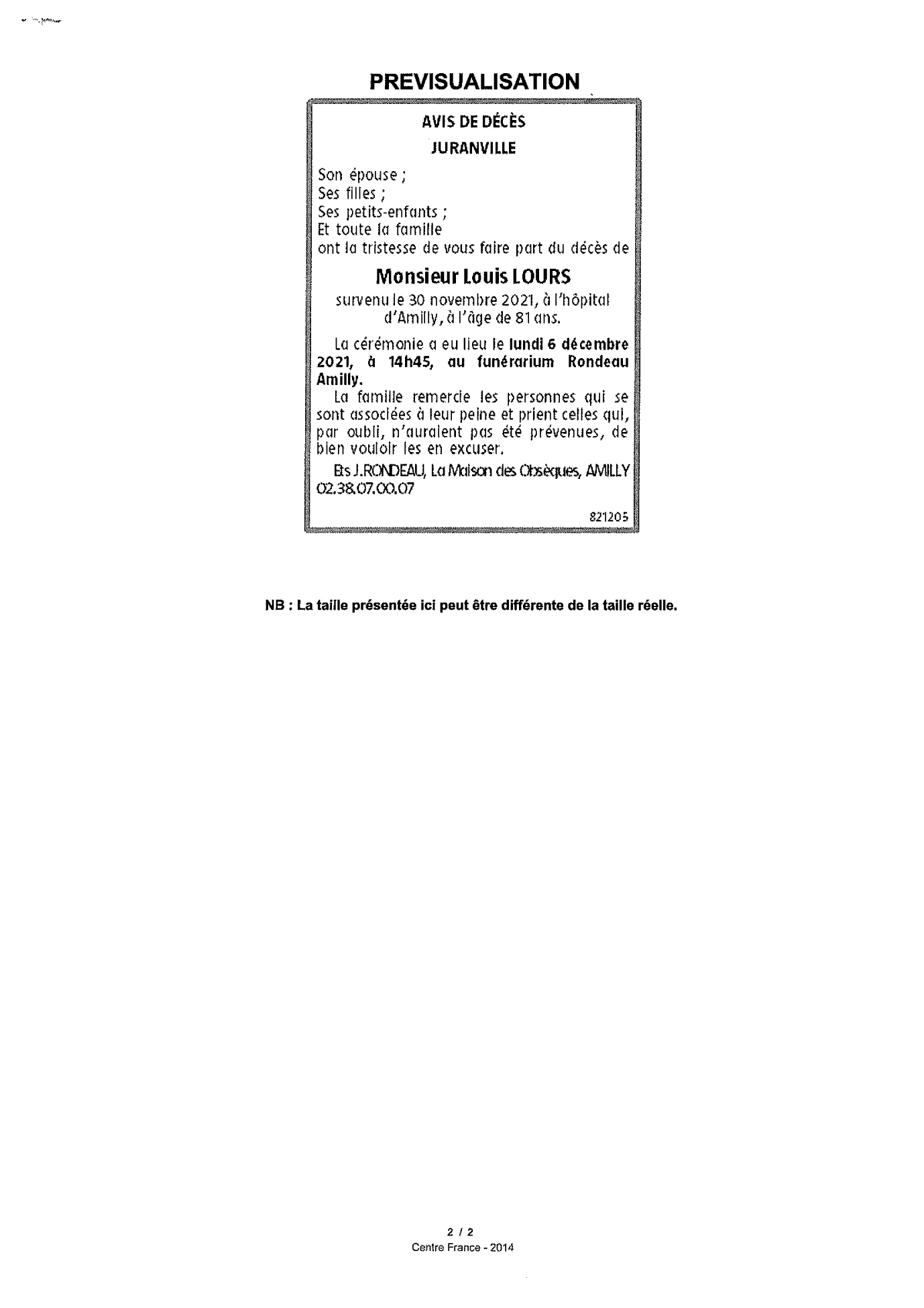 Décédé à Amilly (45200, France) le mardi 30 novembre 2021 à l'âge de 81 ans