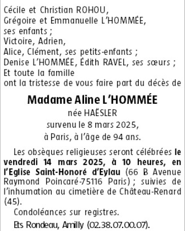 Veuve de Monsieur Madame Philippe L'HOMMÉE