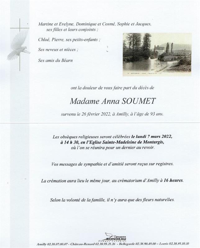 Décédée à Amilly (45200, France) le samedi 26 février 2022 à l'âge de 93 ans