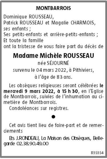 Madame Michèle ROUSSEAU née SÉJOURNÉ