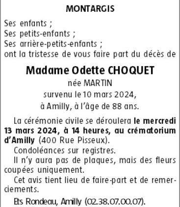 Madame Odette CHOQUET née MARTIN