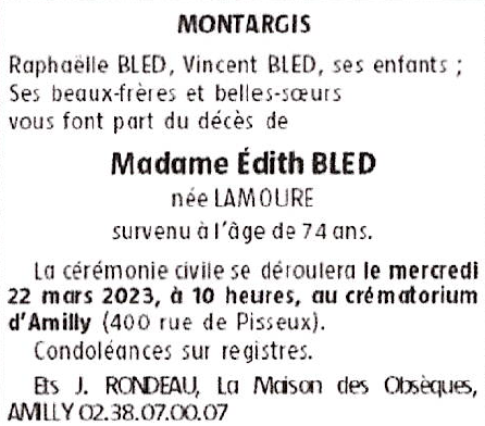 Madame Edith BLED née LAMOURE